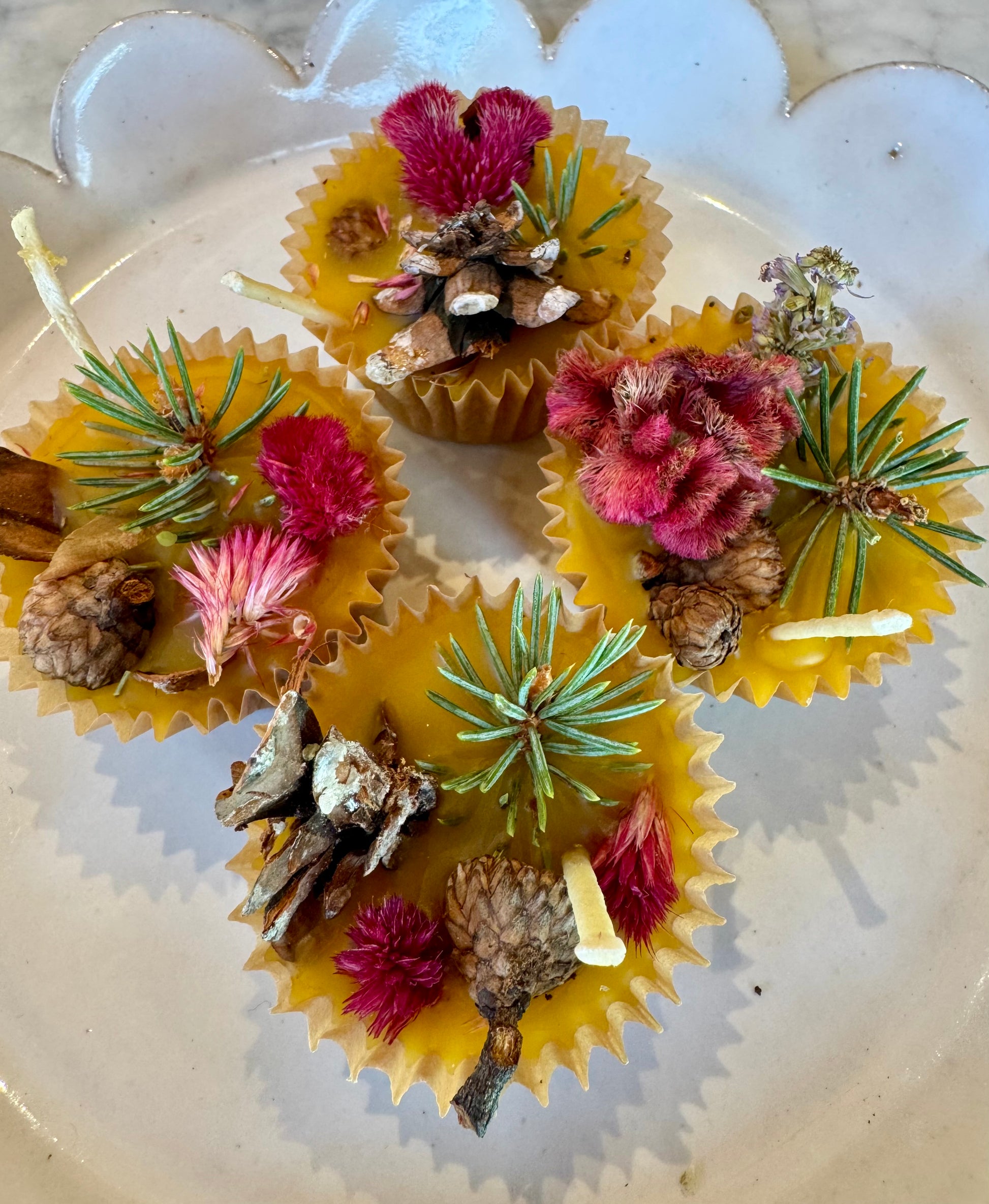 This is for ONE FIRESTARTER. Handmade beeswax firestarters crafted with natural wax, Blue Spruce, Celosia, pine cone petals and acorn hats, with a cotton wick. Easy to light and long-burning — perfect for fireplaces, wood stoves, or campfires.a